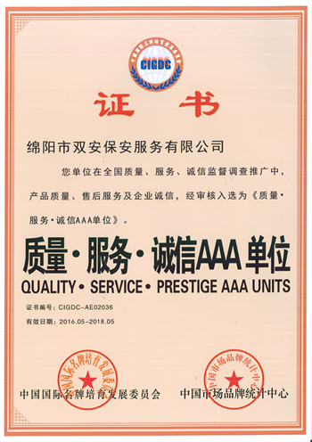 質(zhì)量、服務(wù)、誠信AAA單位證書(shū)